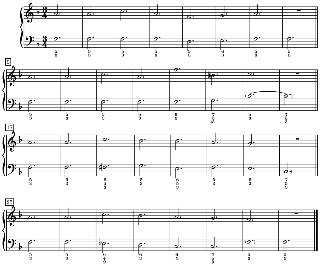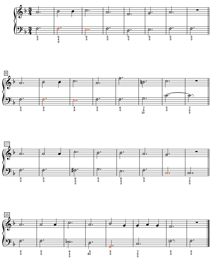 With such a simple melody, the reduction of this piece was straightforward. Because of the relatively diatonic harmonic language, the figured bass also proved to be quick work.